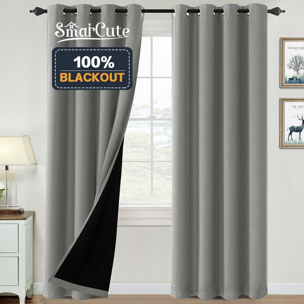 2x 100% Blackout Curtains Thermal Insulated Heat and Full Light with Black Liner