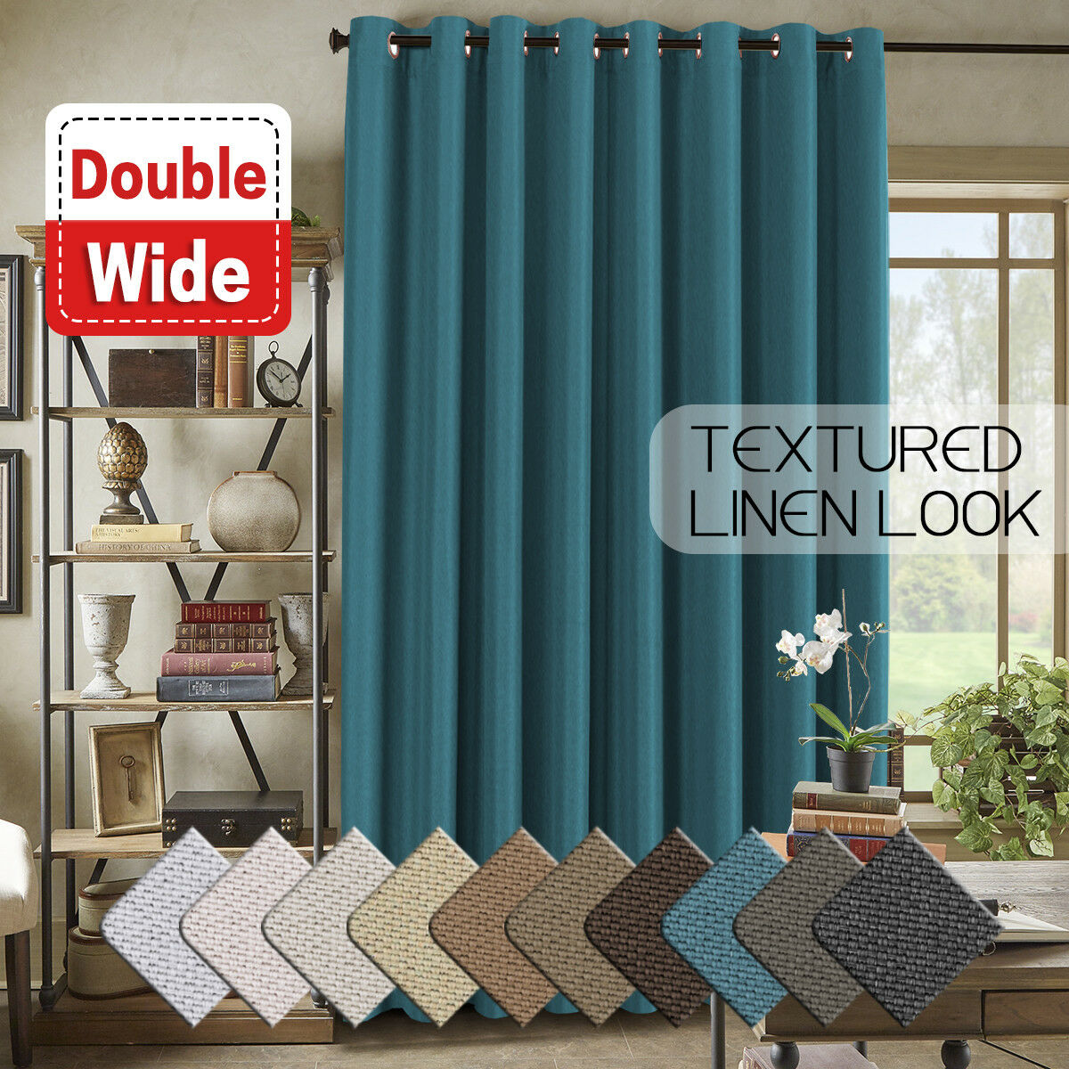 Luxury Linen Textured Blockout Curtain Eyelet Extra Wide Thick Curtain Drapes