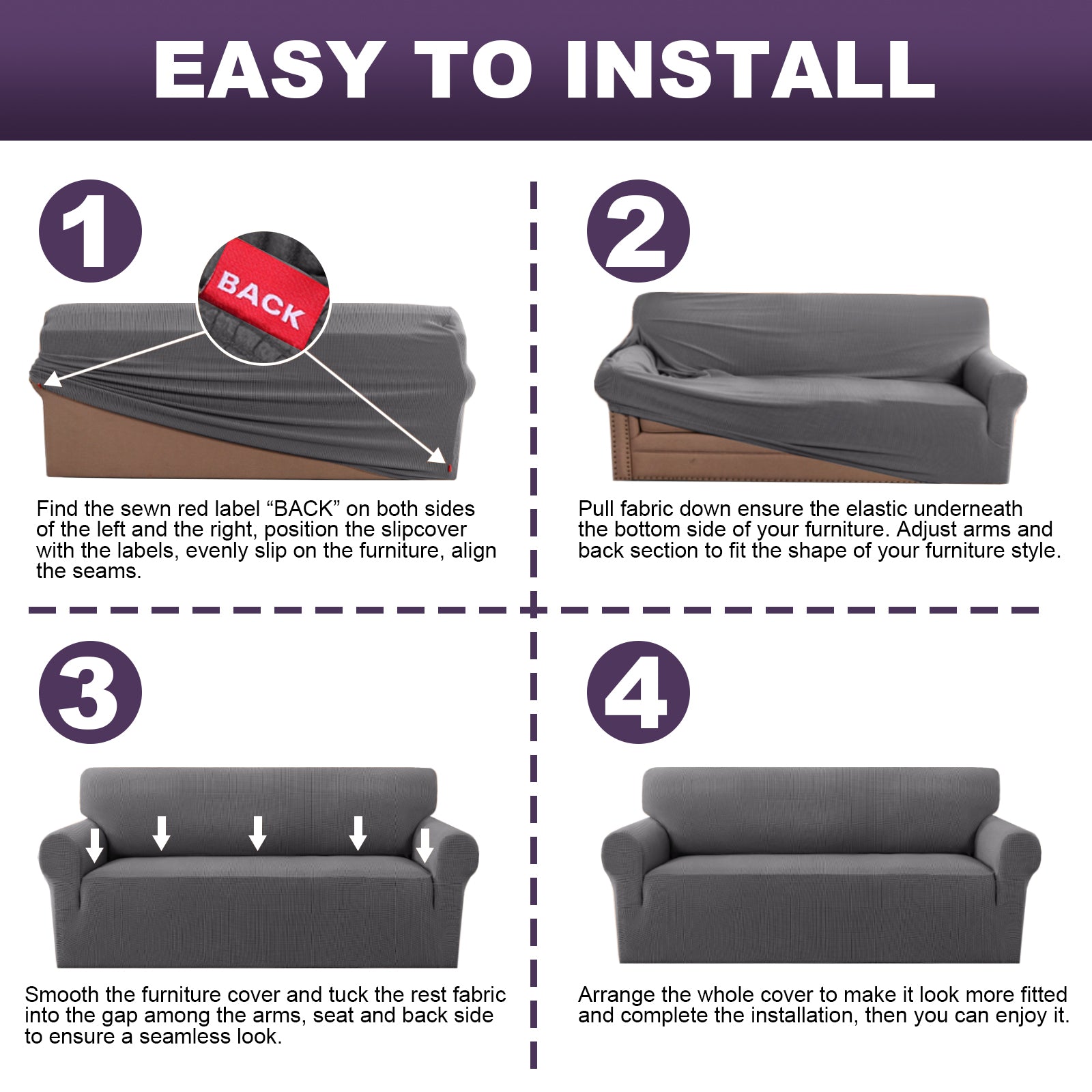 - Easy to put on and off, just tuck the extra fabric into the gap between the back and sitting area to get refresh visual effect.